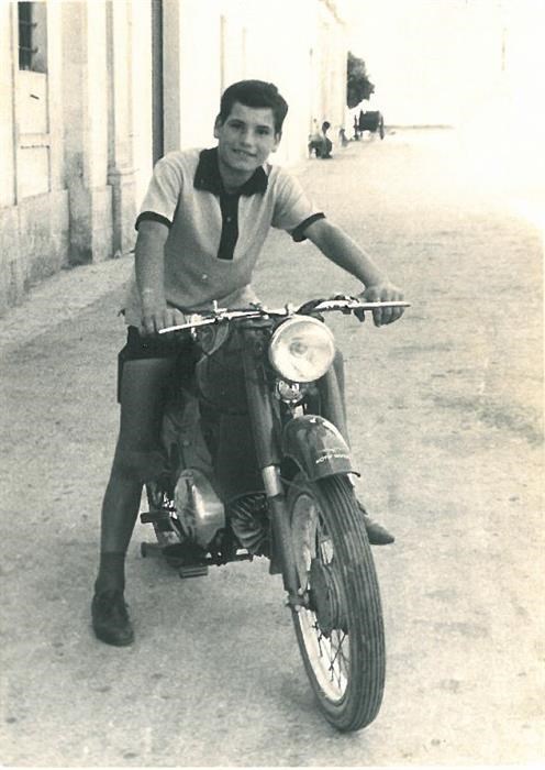 Donato Chironi posa con la sua Moto Guzzi.
