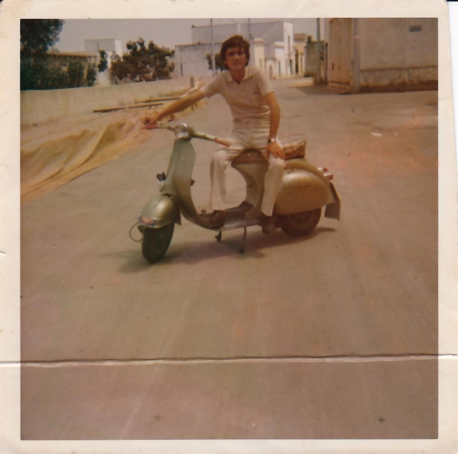 Giuseppe De Riccardis sulla sua vespa.