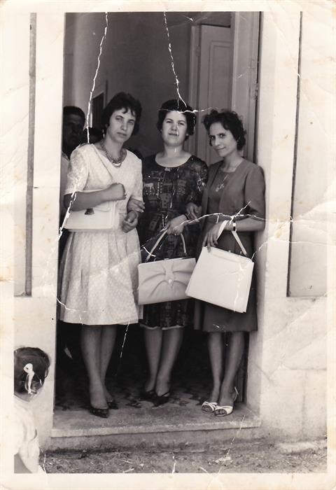 Rita con le sue amiche sulla porta di casa.
